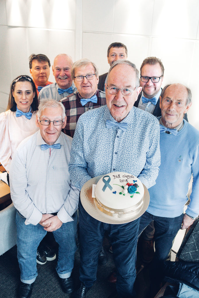 Bursdagsfeiring med kake og noe godt i glasset